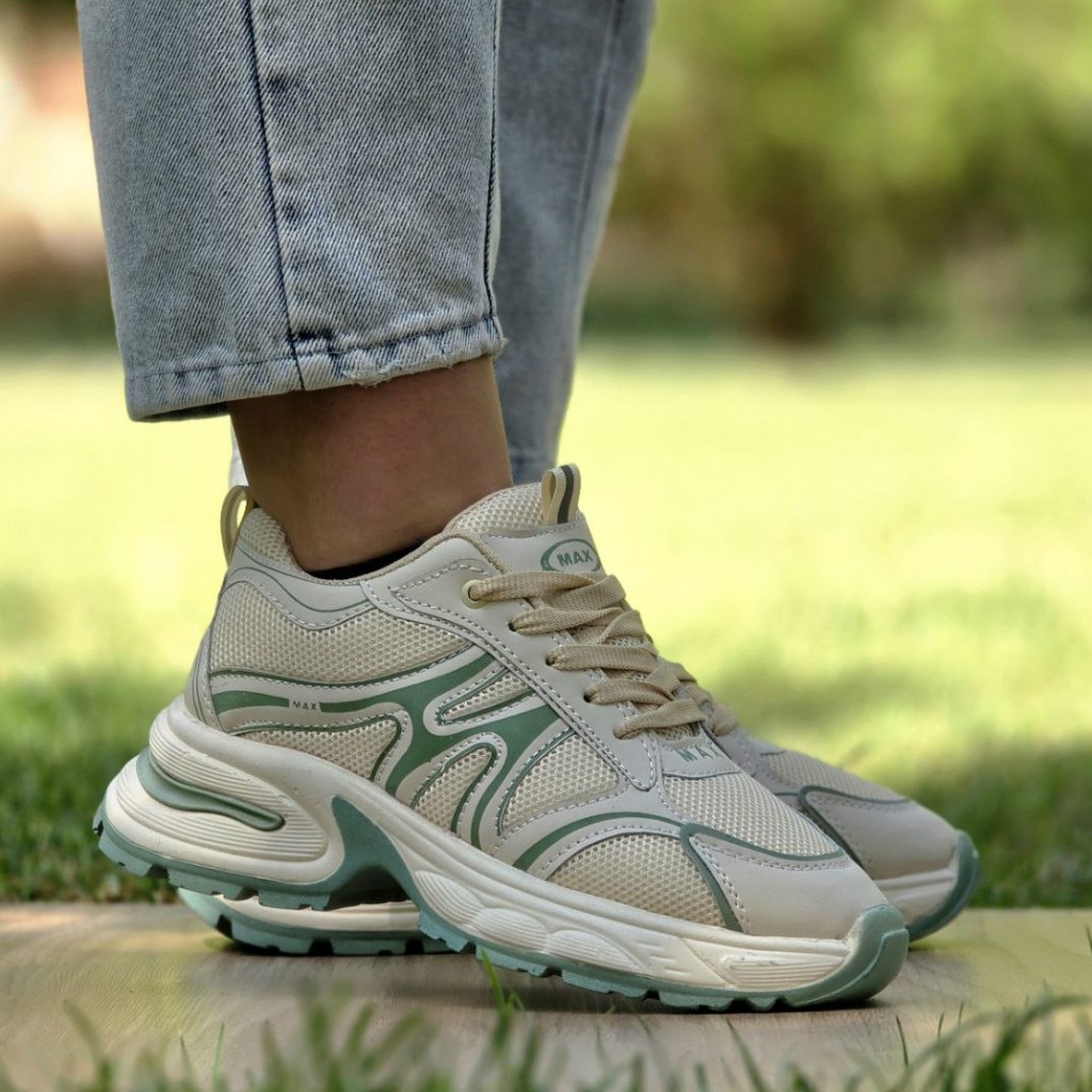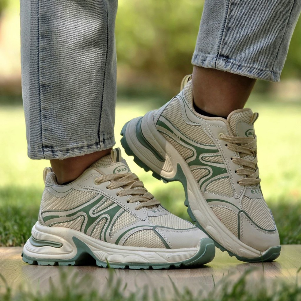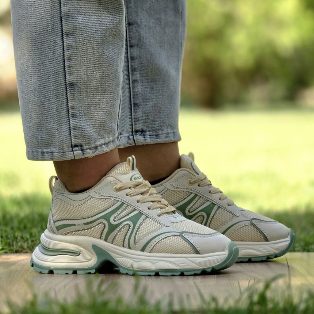 تخفیف فوق العاده بی نظیر کفش کتونی اسپرت دخترانه و زنانه مدل مکس اصیل و زیبا رنگ کرم سبز با ارسال رایگان