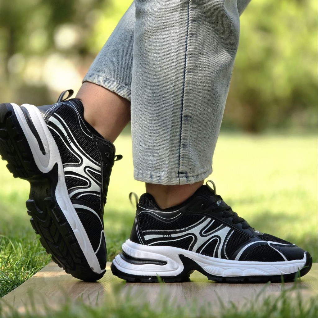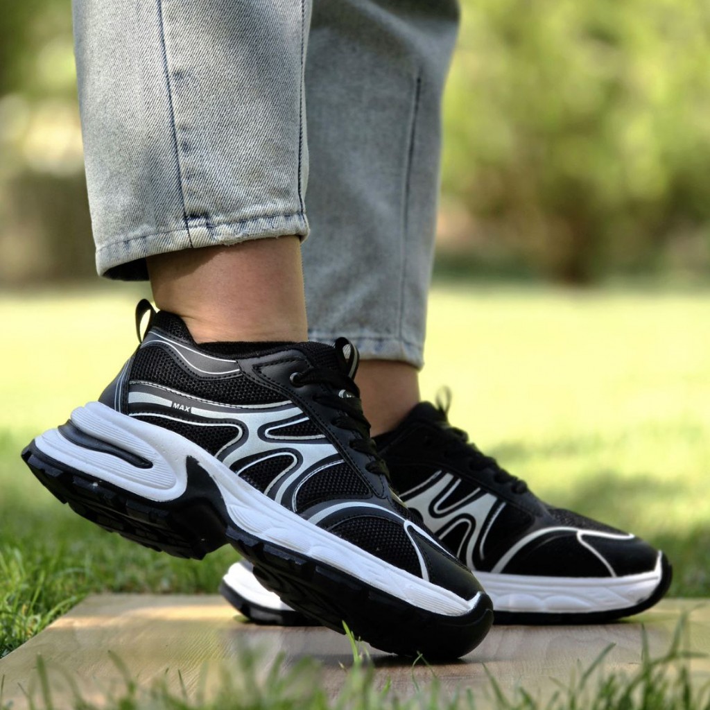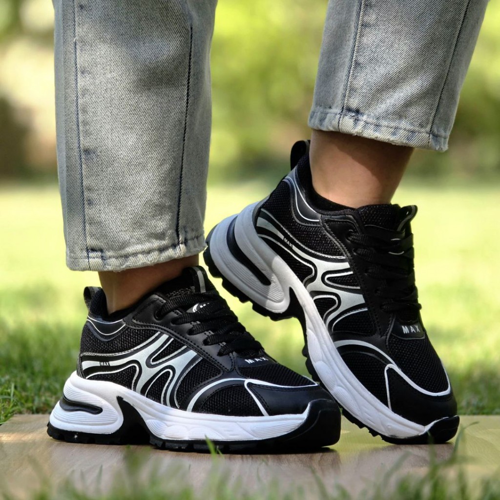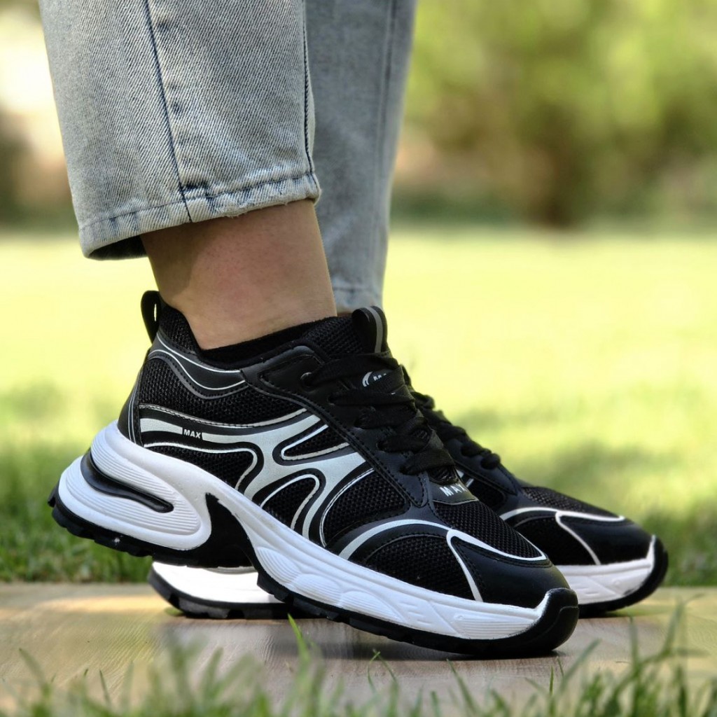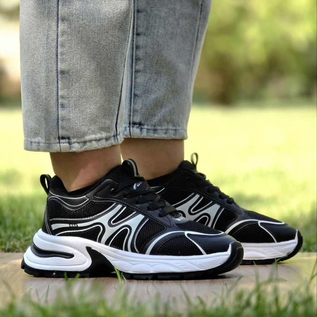 تخفیف فوق العاده عاالی کفش کتونی اسپرت دخترانه و زنانه مدل مکس ترند و به روز رنگ مشکی سفید با ارسال رایگان