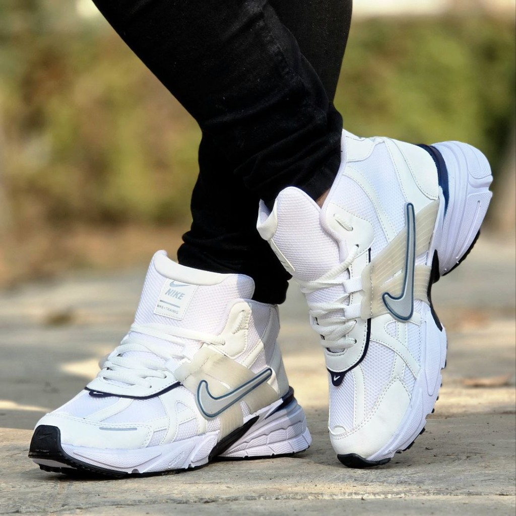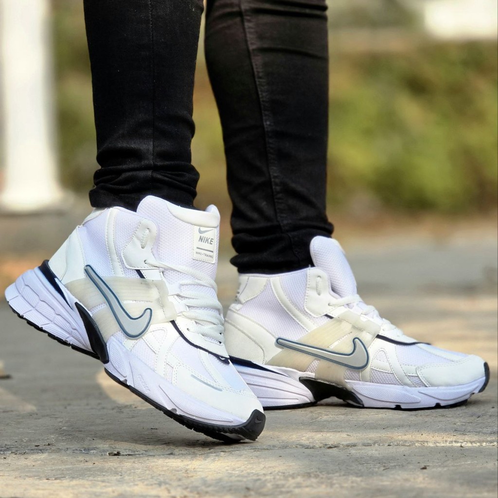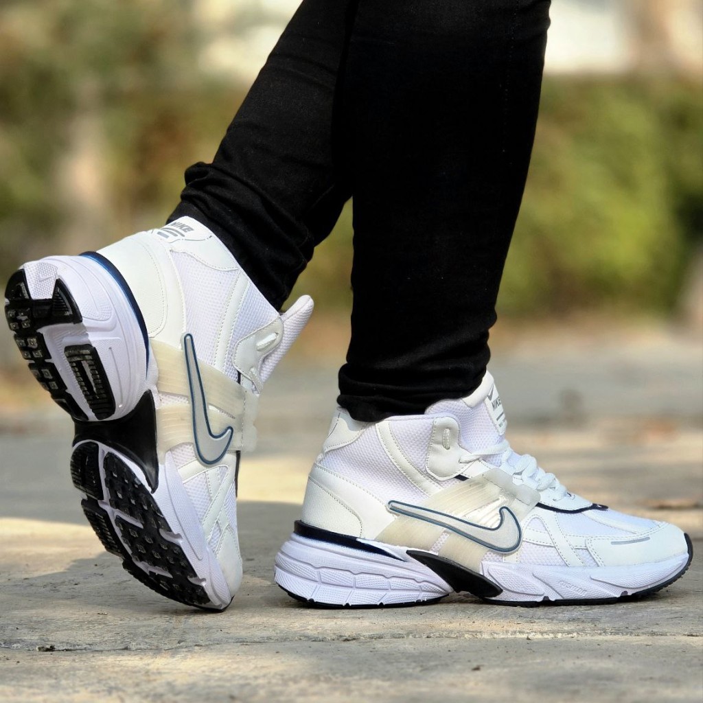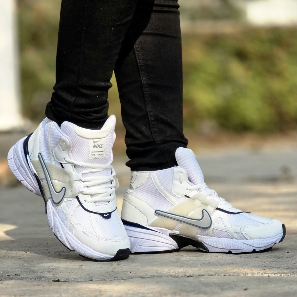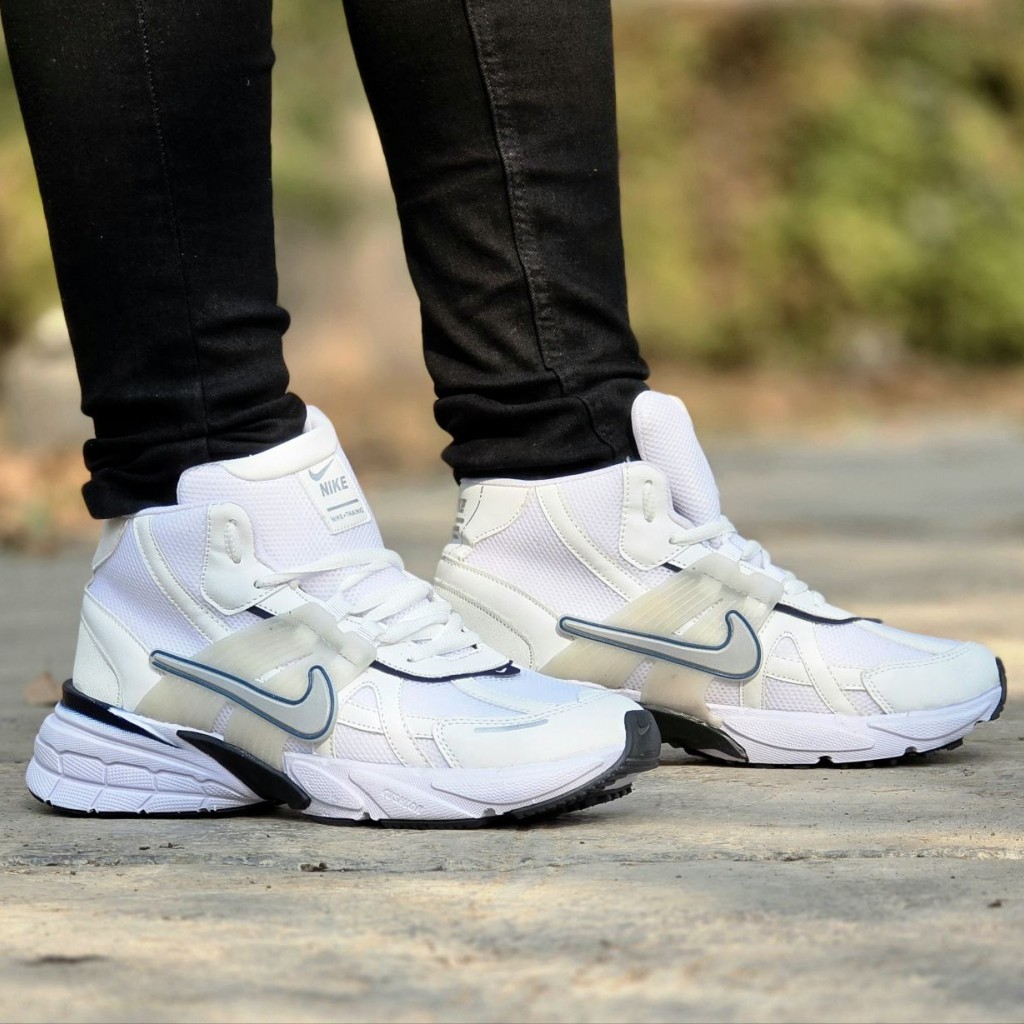 حراج فوق العاده کفش نیم بوت مردانه و پسرانه الهامگرفته از مدل محبوب Nike V2K با کیفیتی عالی رنگ سفیدسرمه ای با ارسال رایگان