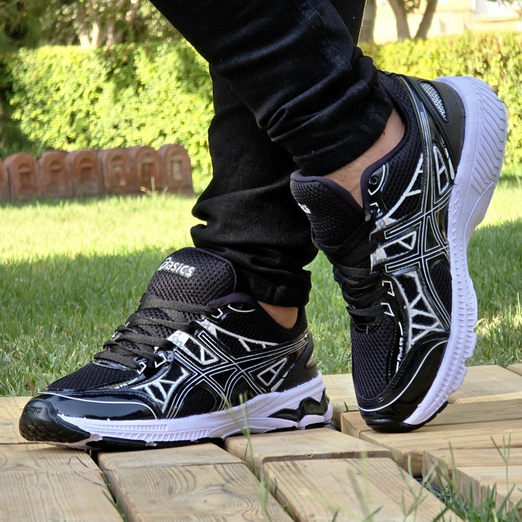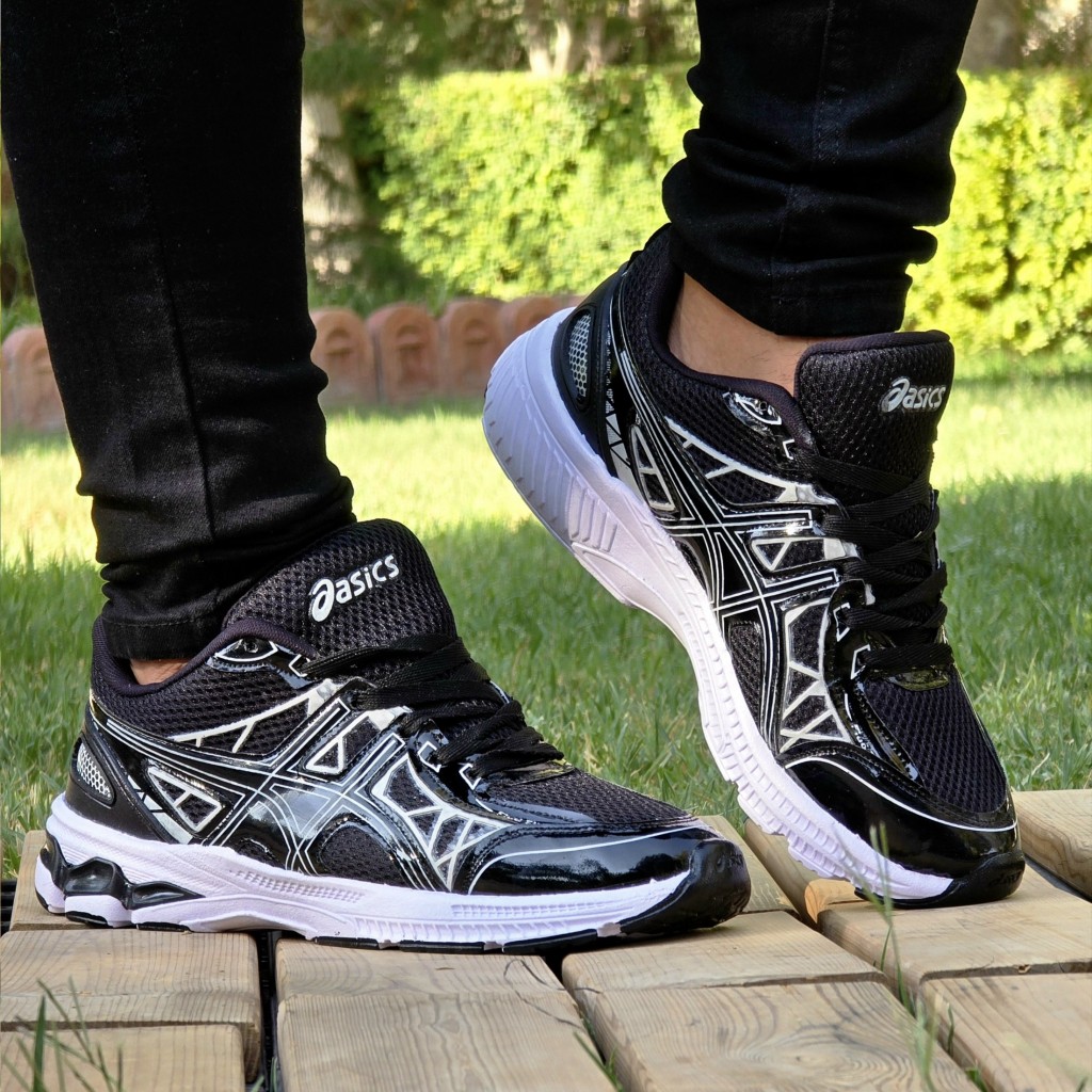 تخفیف ویژه کفش اسپرت مردانه و پسرانه مدل اسیکس مقاوم و عالی رنگ مشکی نقره ای زیر سفید با ارسال رایگان