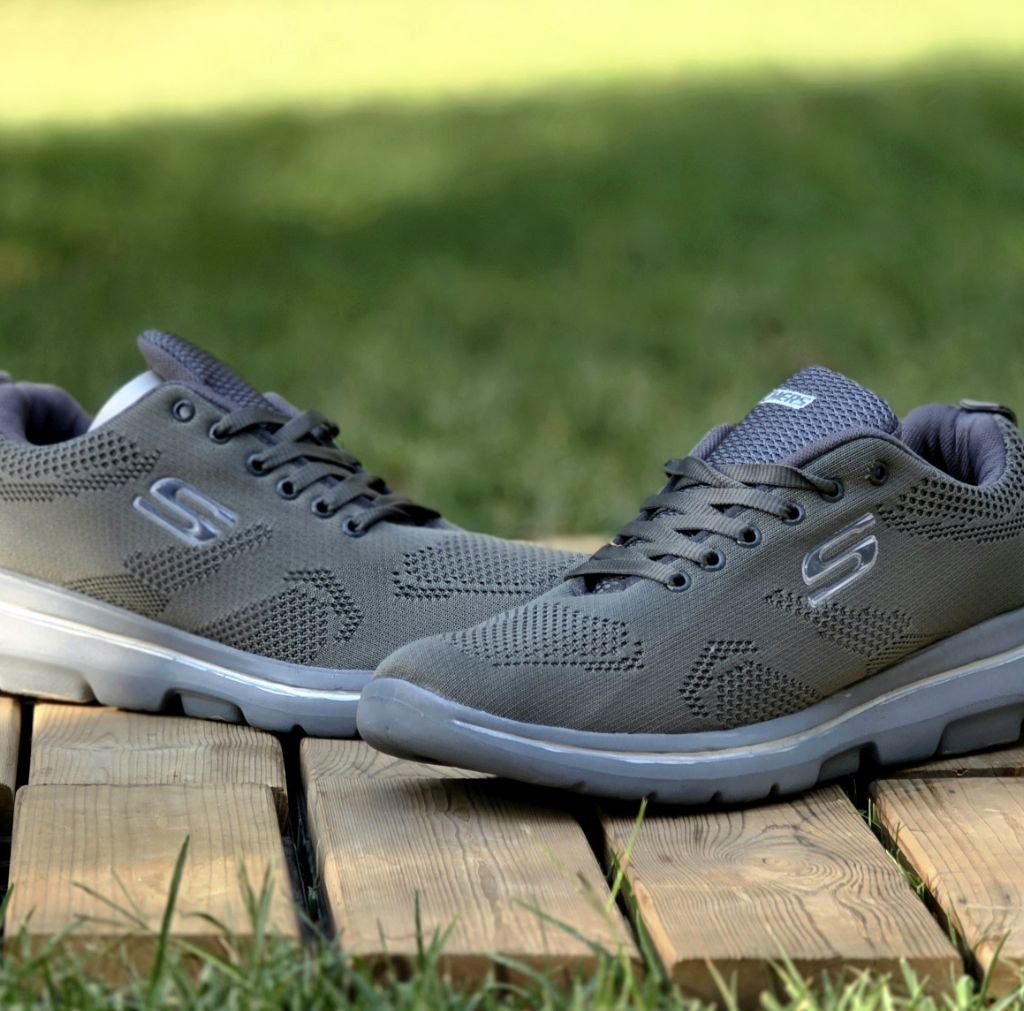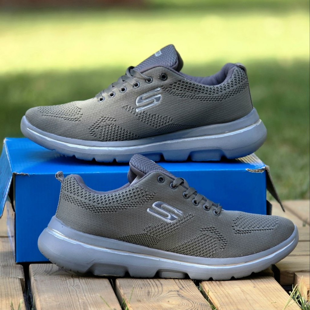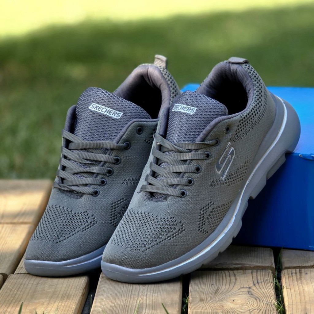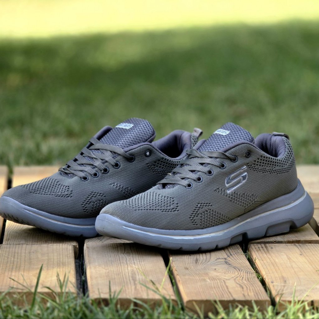 فروش عالی کفش اسپرت مردانه و پسرانه بزرگ پا مدل اسکیچرز خوش پا و بادوام رنگ طوسی تمام با ارسال رایگان