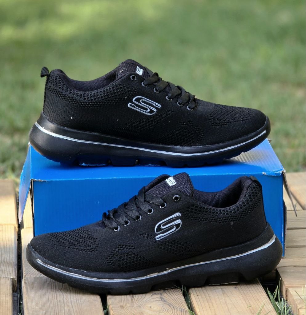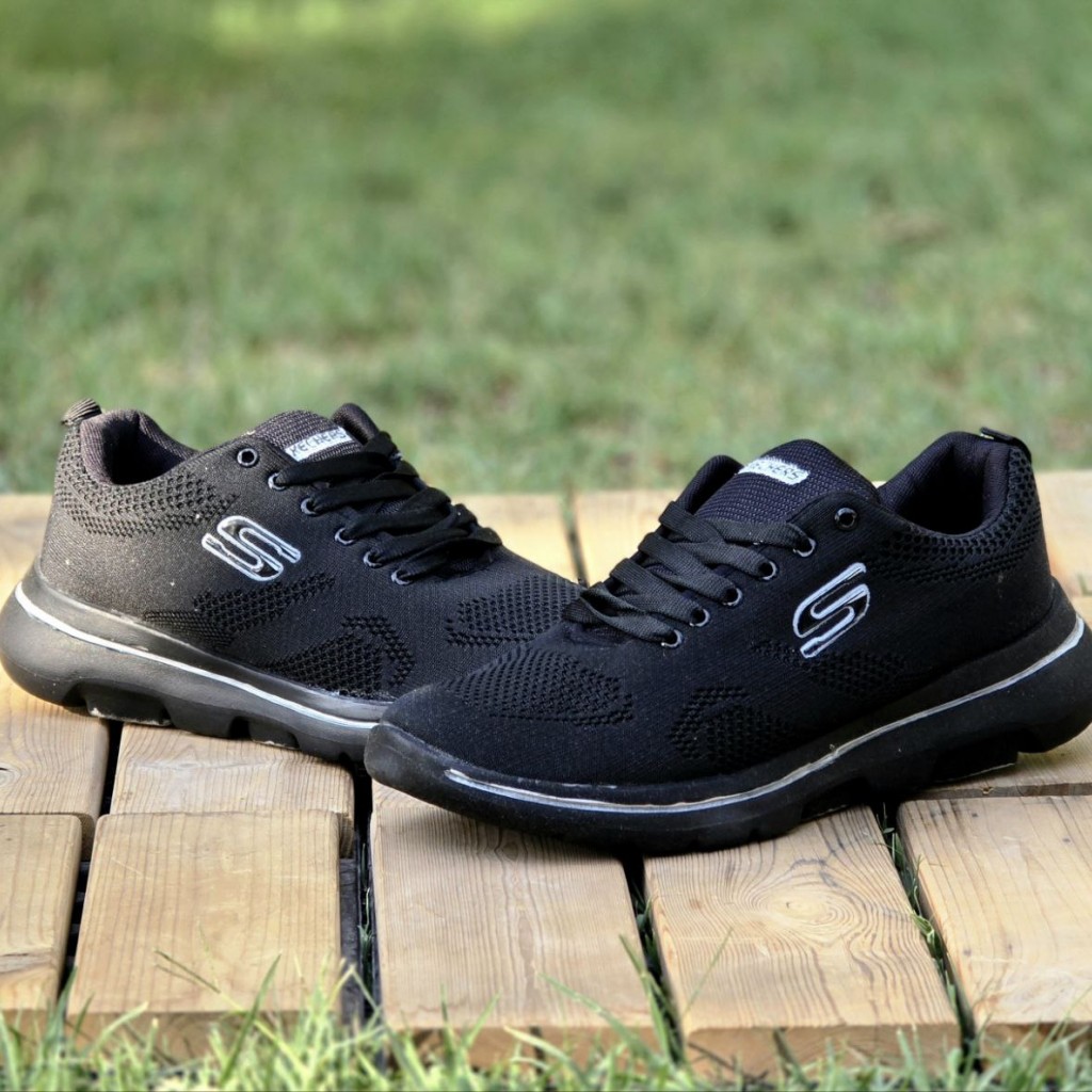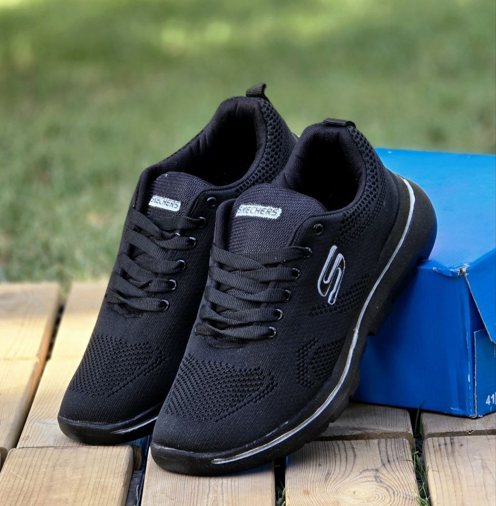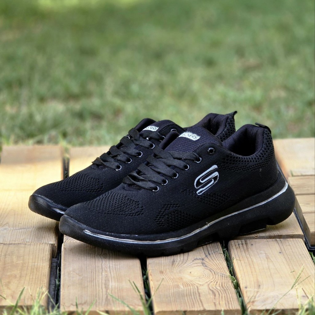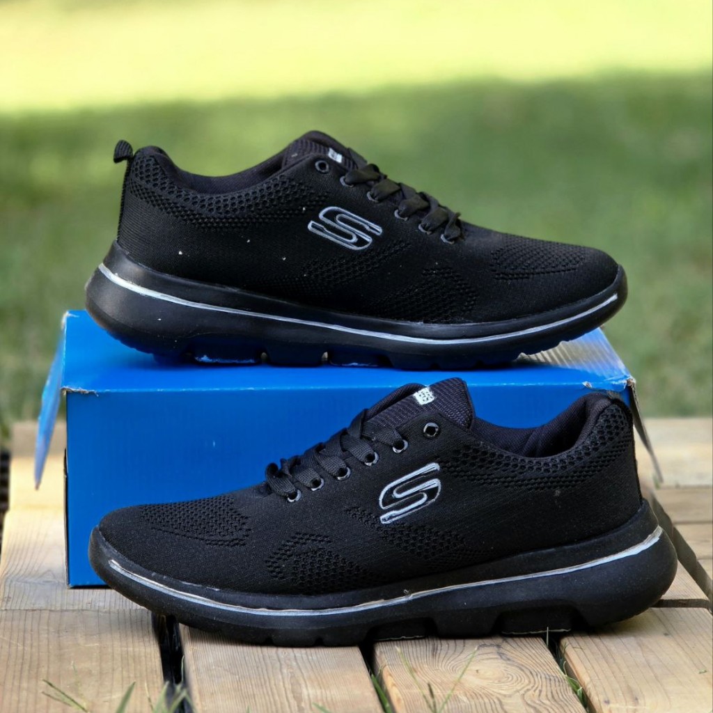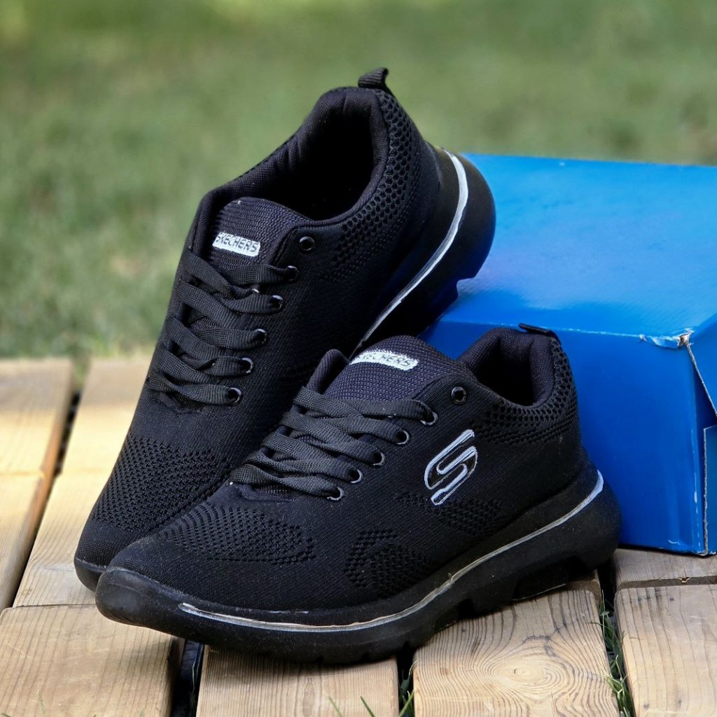 حراج ارزان کفش اسپرت مردانه و پسرانه بزرگ پا مدل اسکیچرز مقاوم و راحت رنگ مشکی تمام با ارسال رایگان