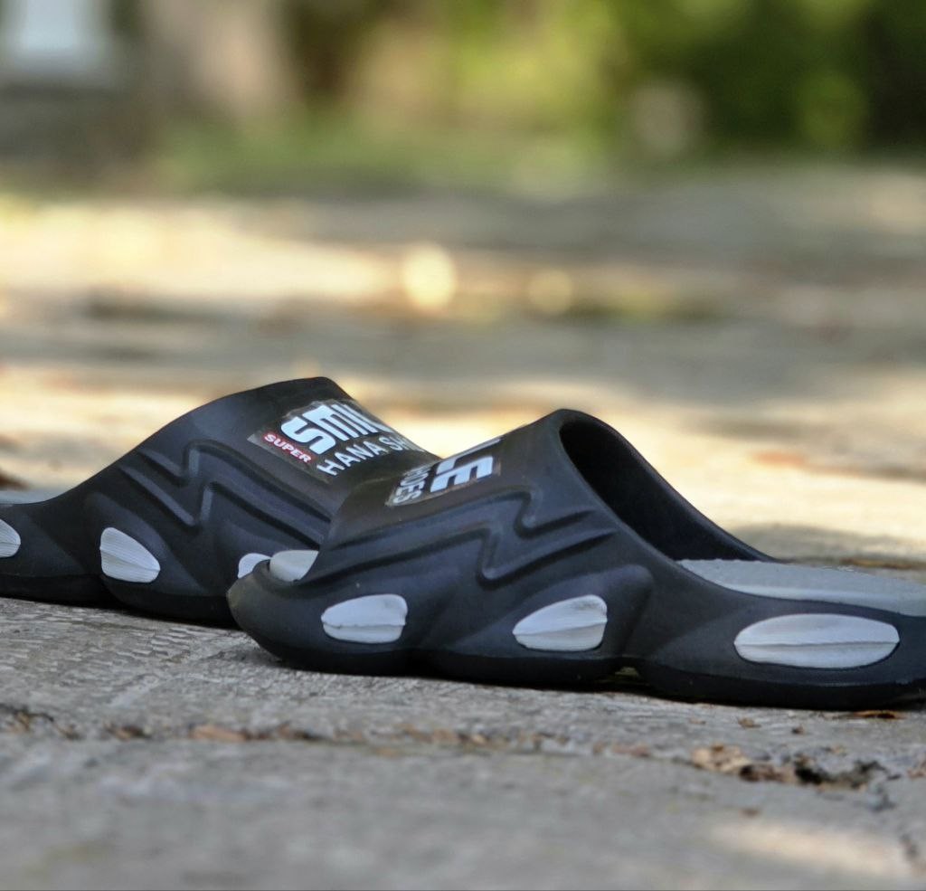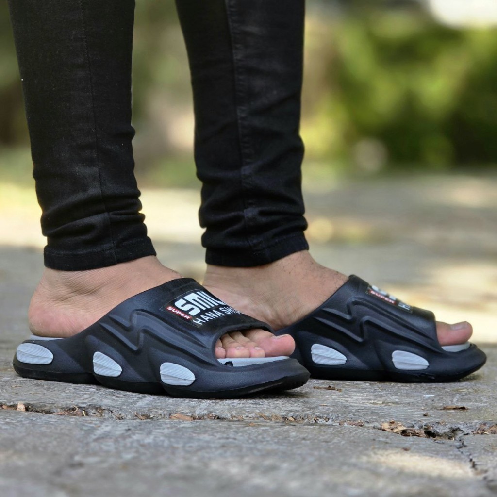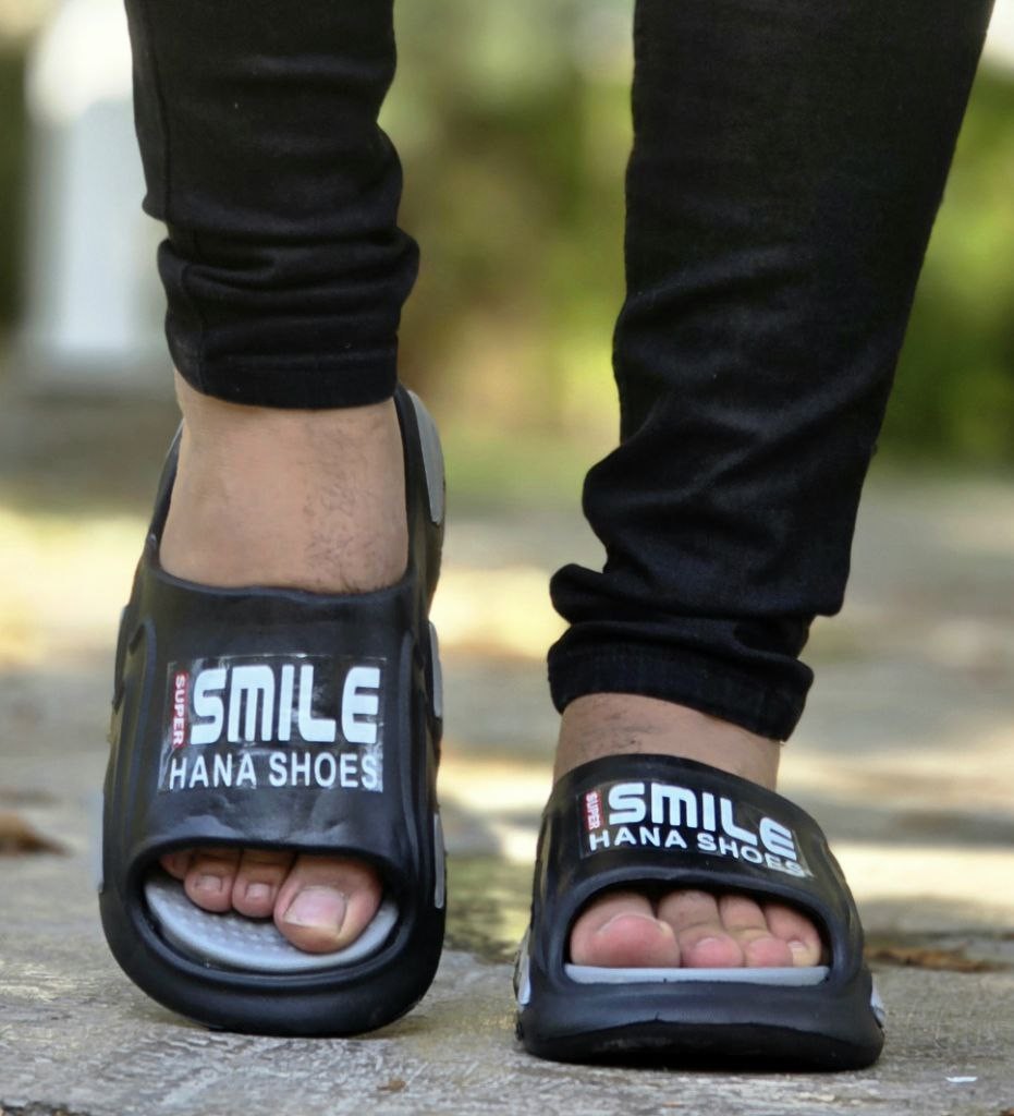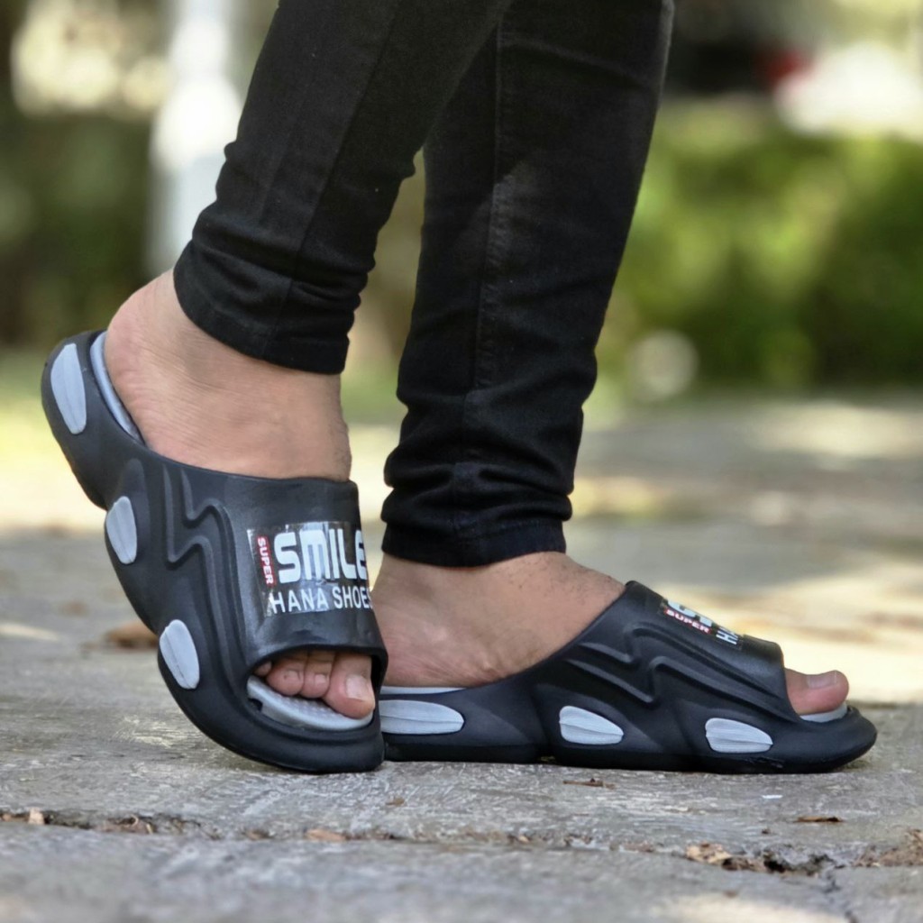 حراج فوق العاده دمپایی صندل مردانه و پسرانه مدل فشیون طرح smile جدید و نفیس رنگ مشکی طوسی با ارسال رایگان