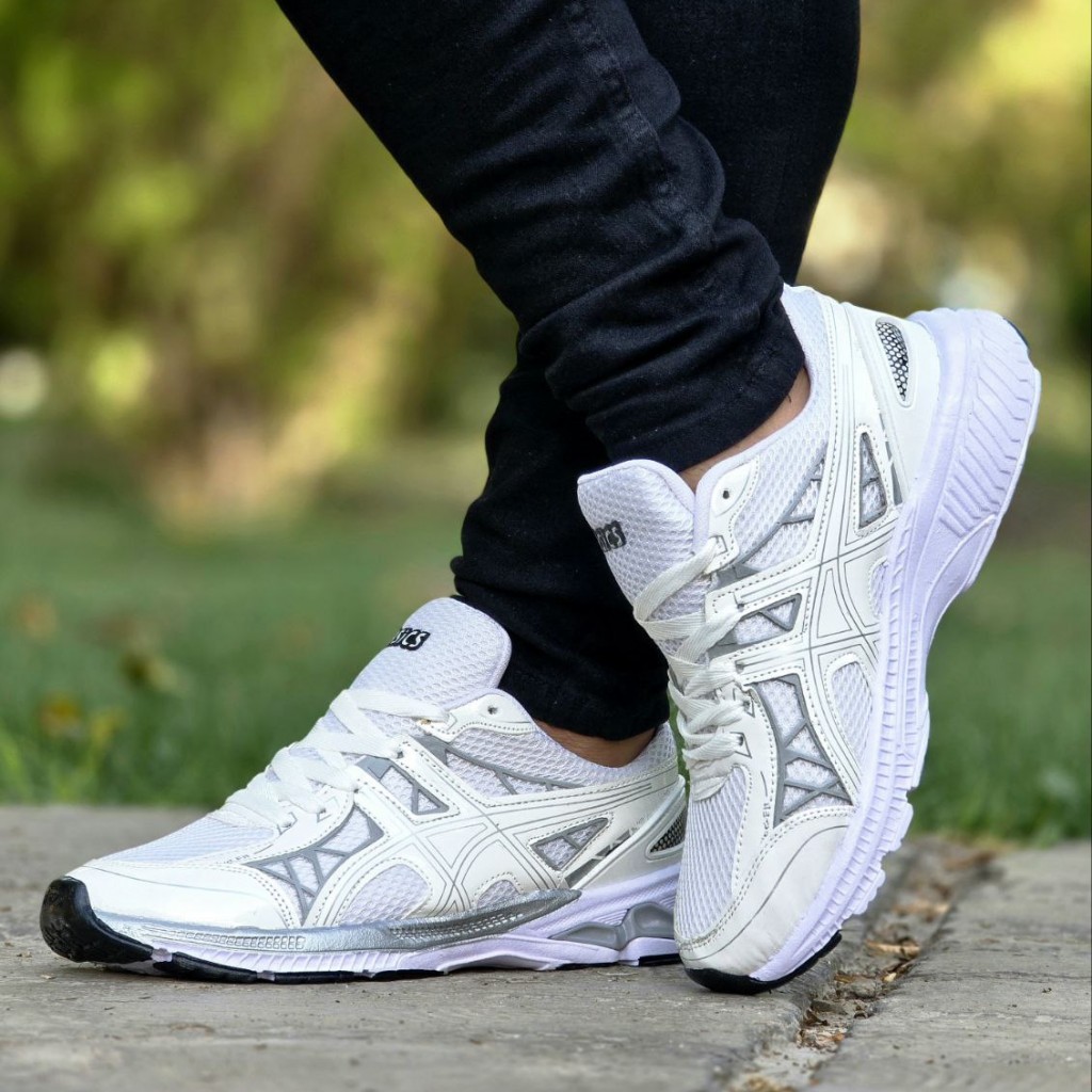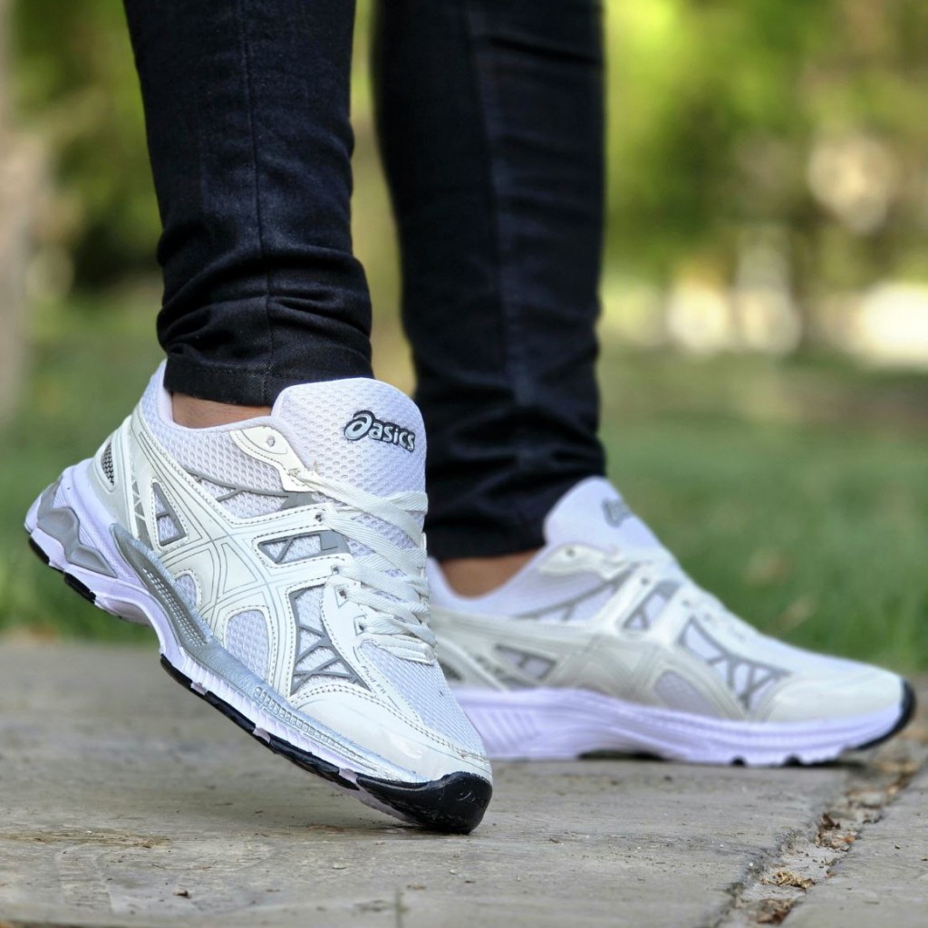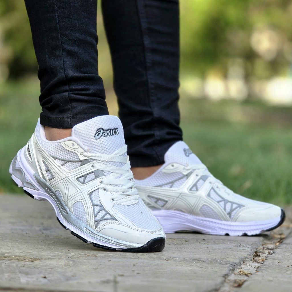 حراج بی نظیر کفش اسپرت مردانه و پسرانه مدل اسیکس به صرفه و راحت رنگ سفید طوسی با ارسال رایگان