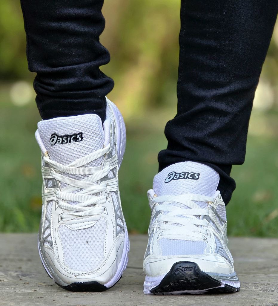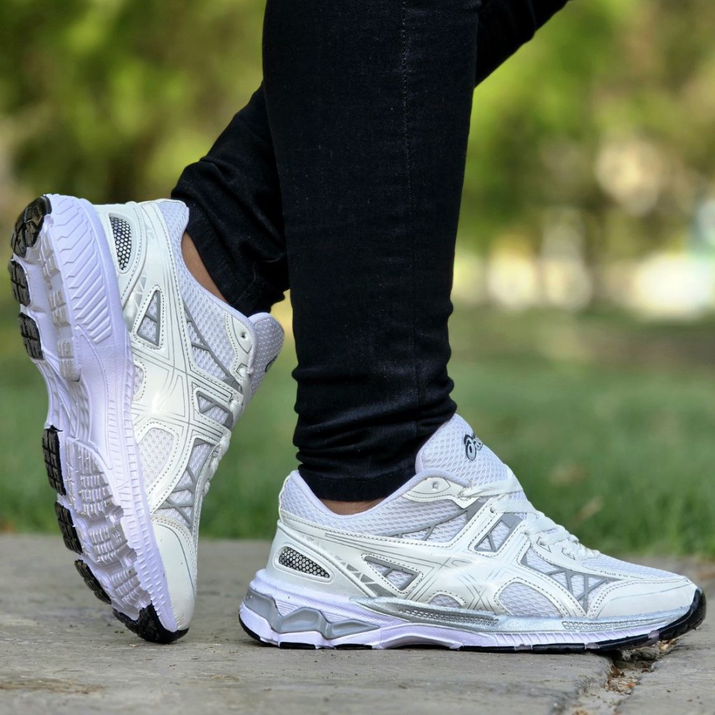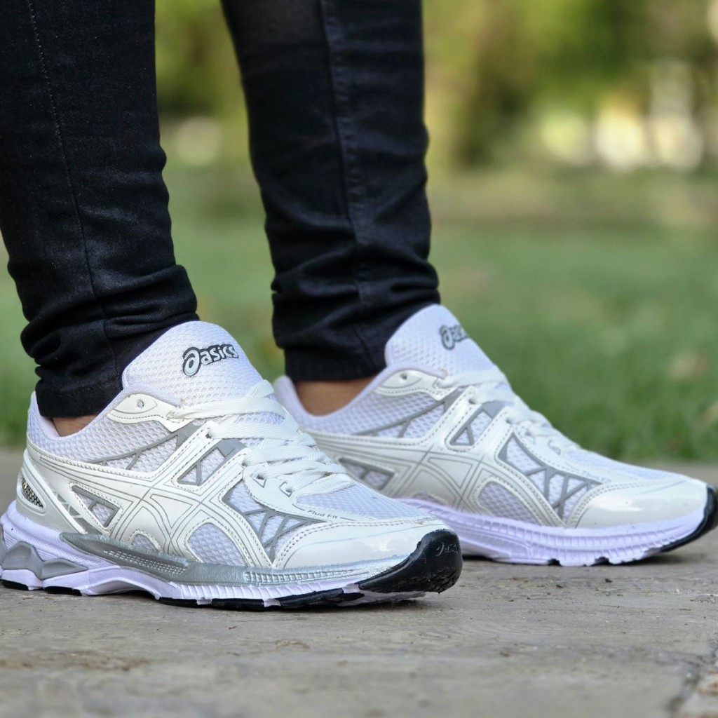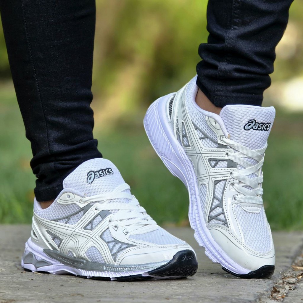 حراج بی نظیر کفش اسپرت مردانه و پسرانه مدل اسیکس به صرفه و راحت رنگ سفید طوسی با ارسال رایگان