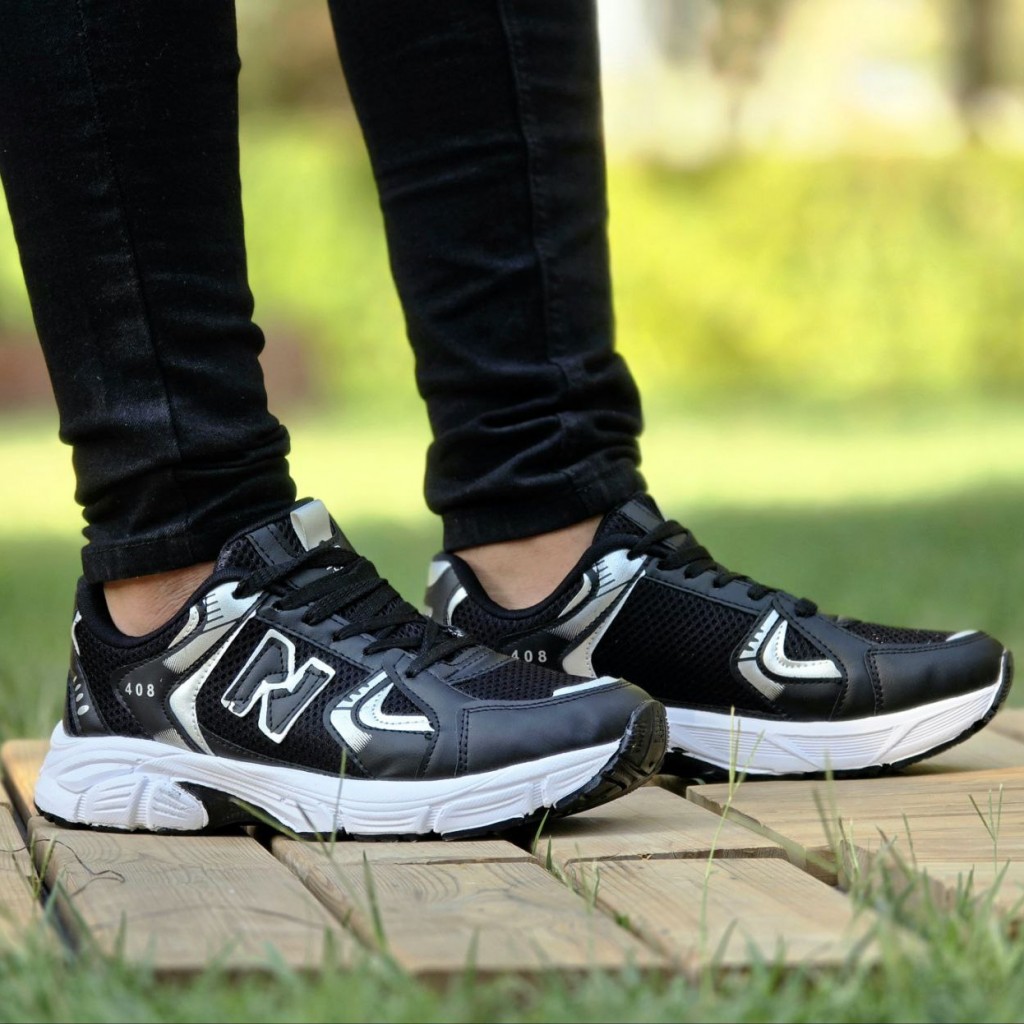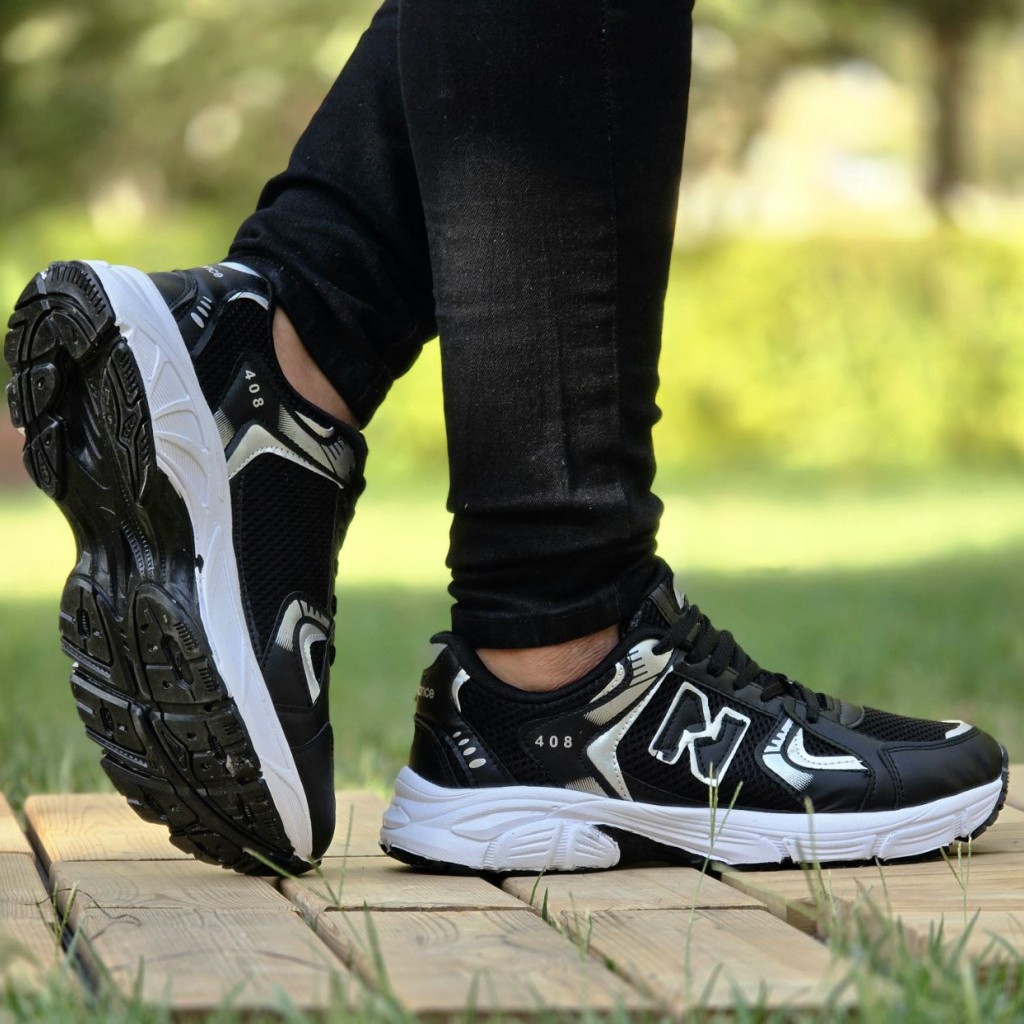 فروش بی نظیر کفش ست اسپرت مردانه زنانه مدل نیوبالانس 408 باکیفیت و خوش پا رنگ مشکی زیره سفید با ارسال رایگان