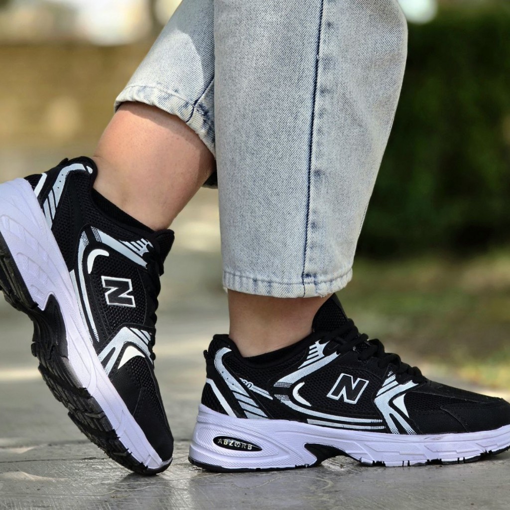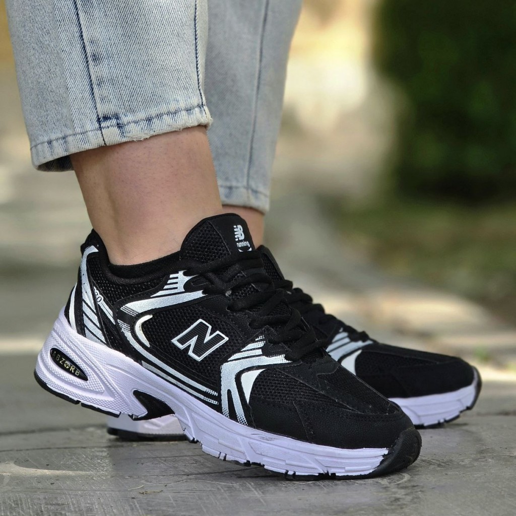 حراج ارزان کفش اسپرت زنانه دخترانه مدل نیوبالانس 530 زیبا و مقاوم رنگ مشکی زیره سفید با ارسال رایگان
