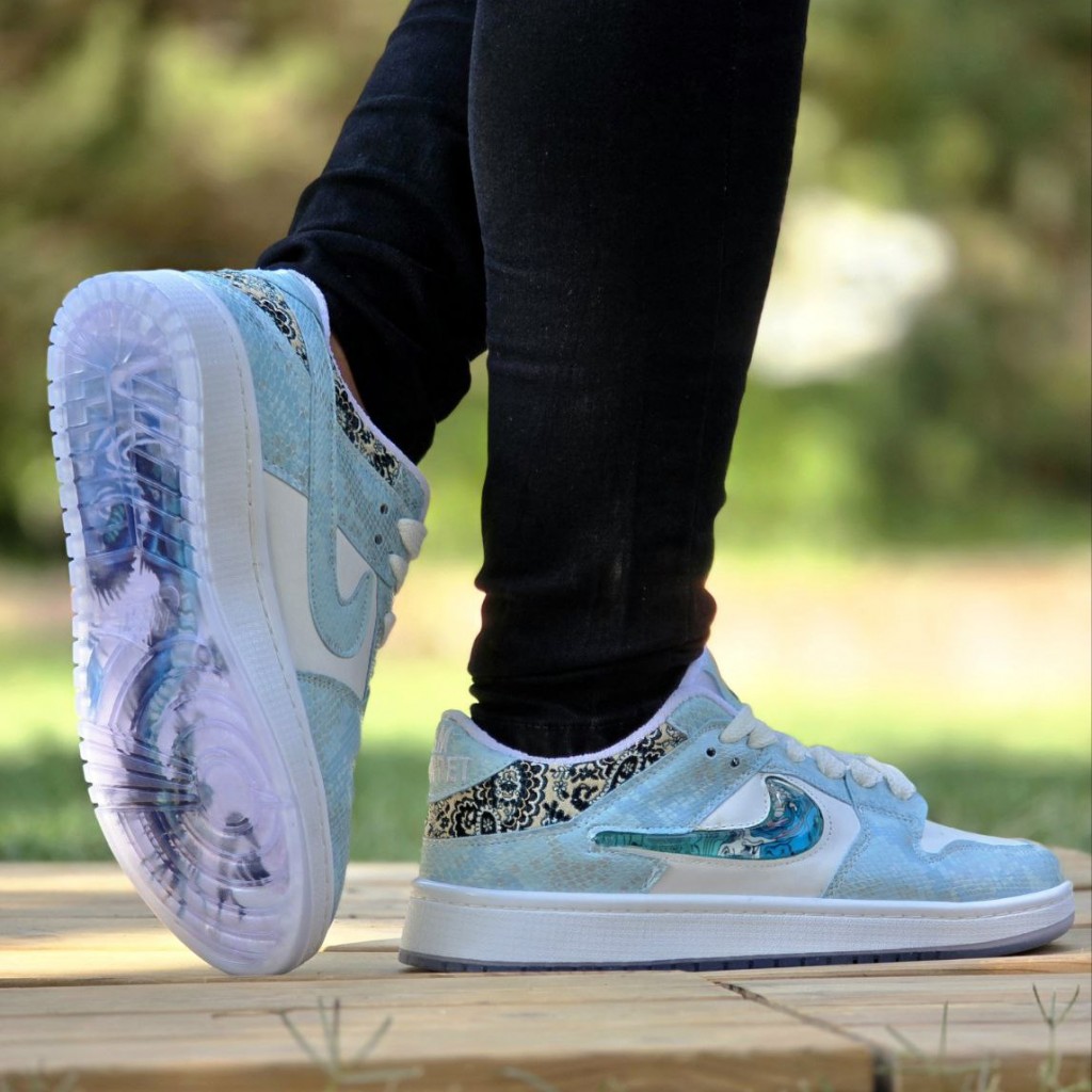 تخفیف بی نظیر کفش کتونی اسپرت نایک دراگون زنانه و مردانه خوش پا و زیبا رنگ آبی سفید باارسال رایگان