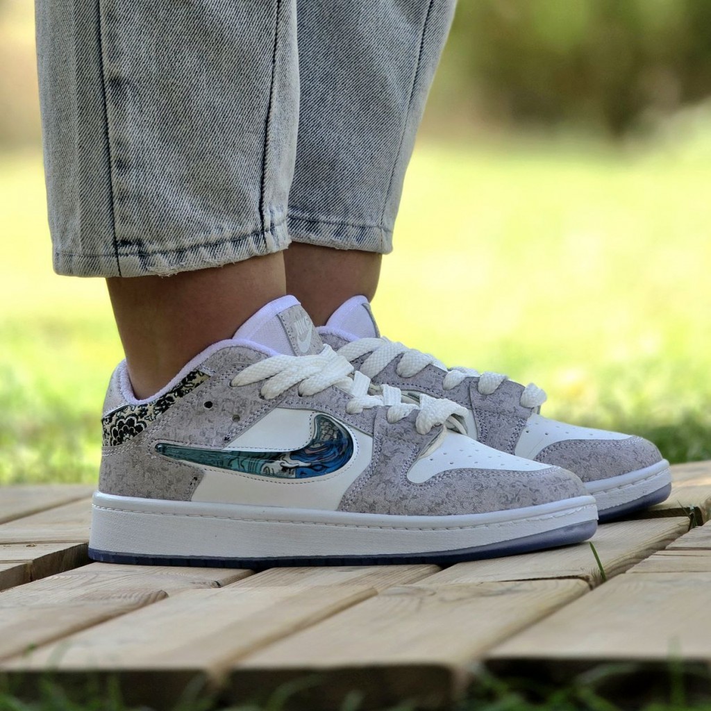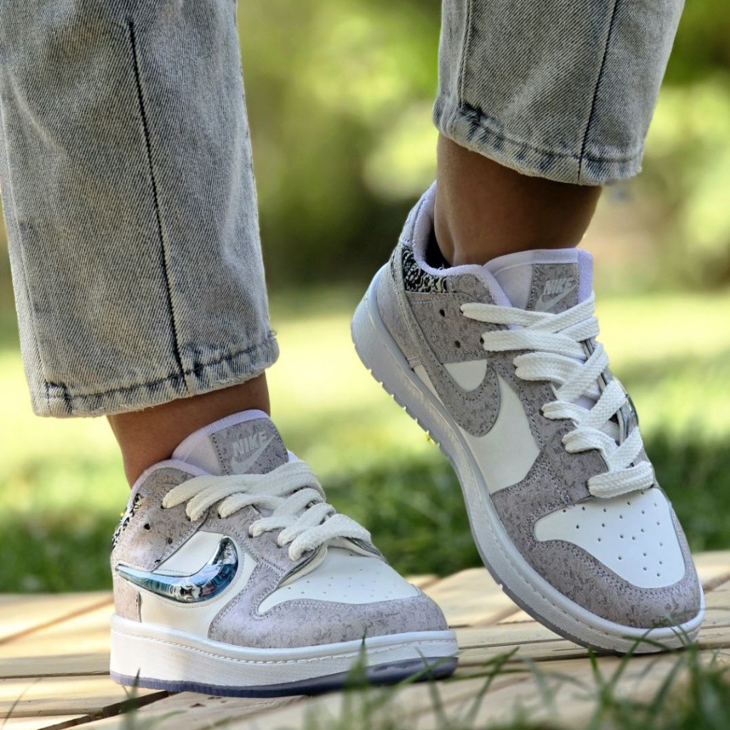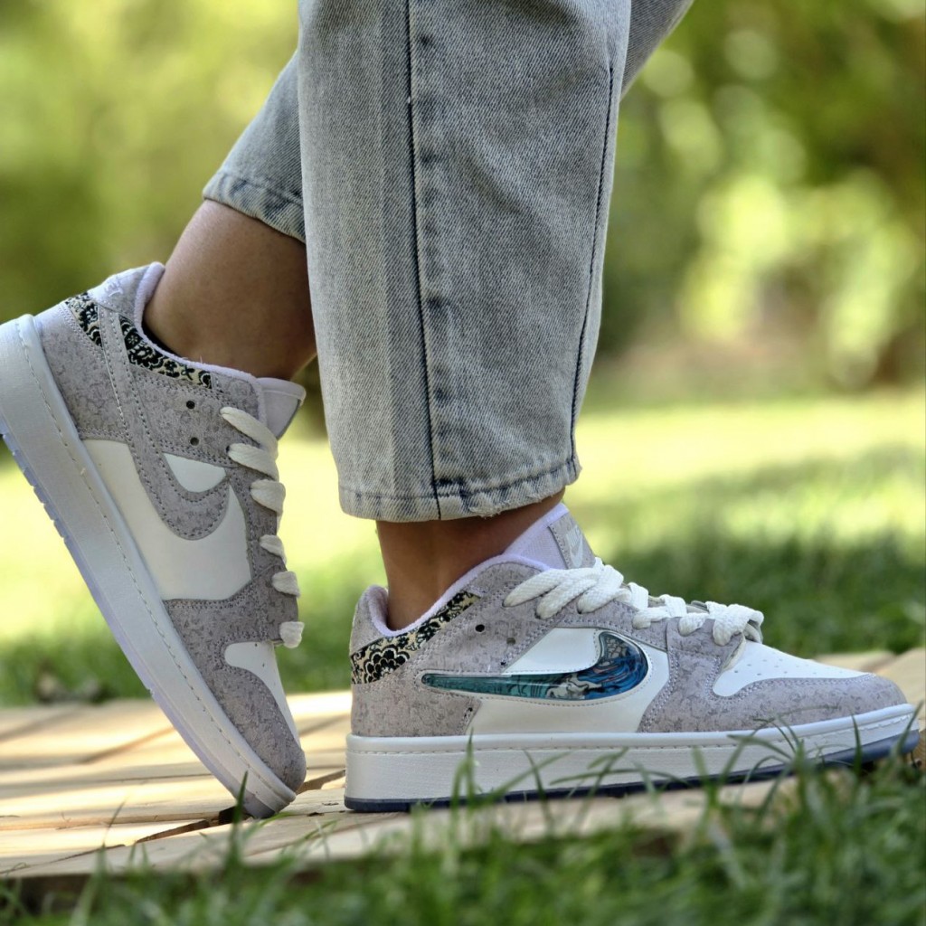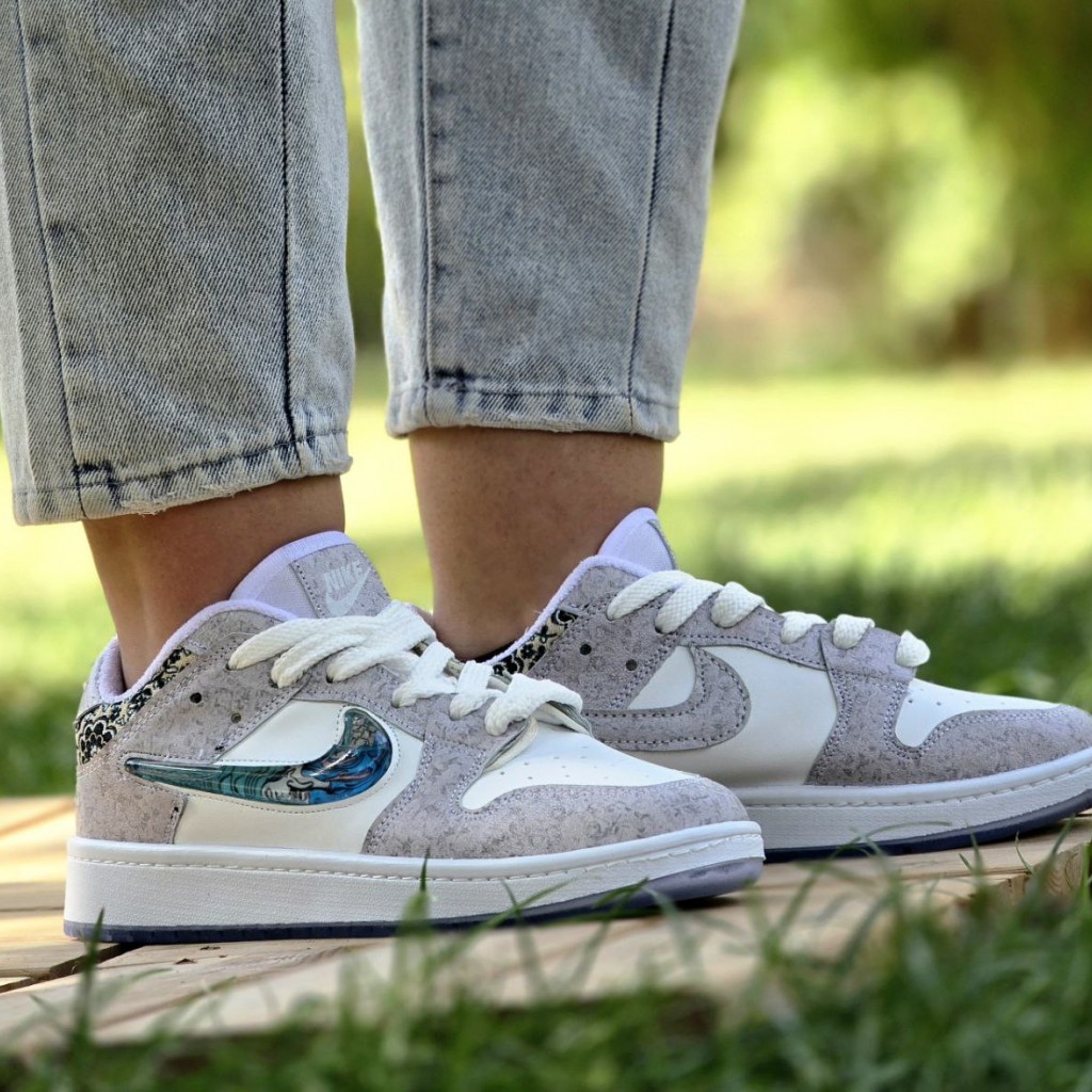 حراج ویژه کفش کتونی اسپرت نایک دراگون زنانه و مردانه پرفروش و شیک رنگ طوسی سفید باارسال رایگان