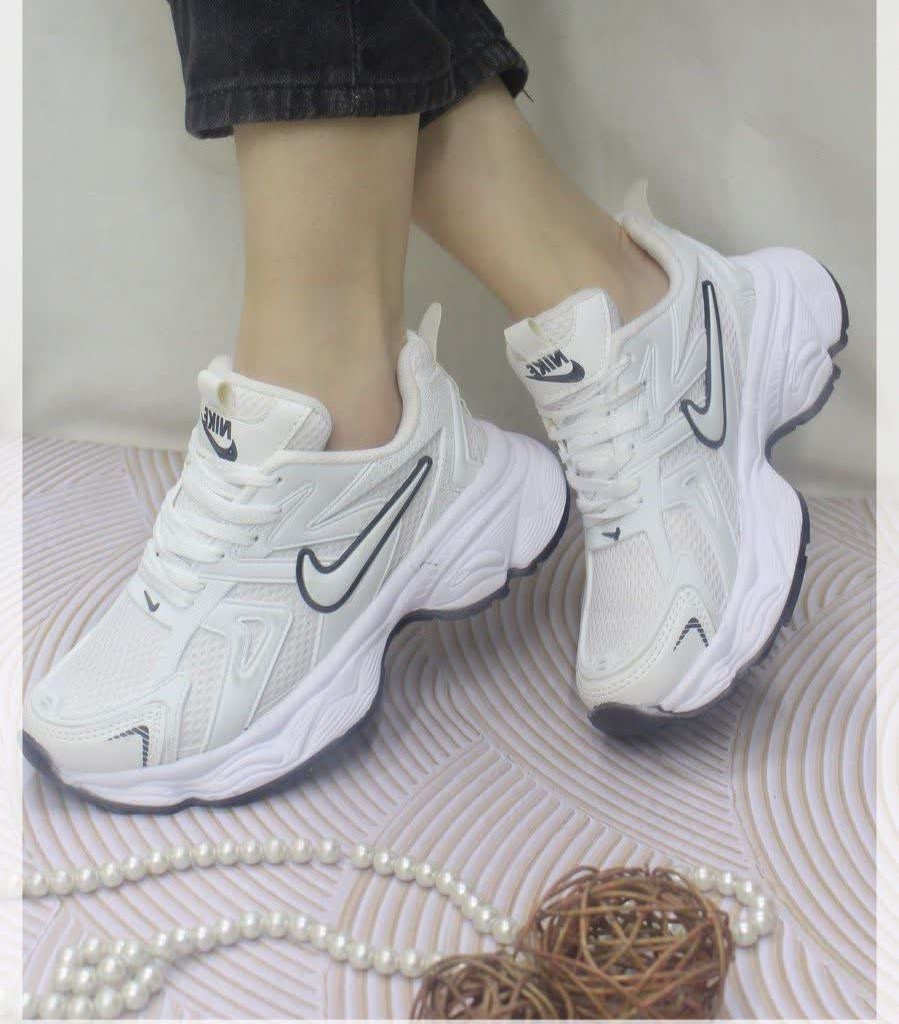 فروش جدید کفش کتونی اسپرت زنانه دخترانه مدل نایک پرطرفدار رنگ سفیدطوسی باارسال رایگان