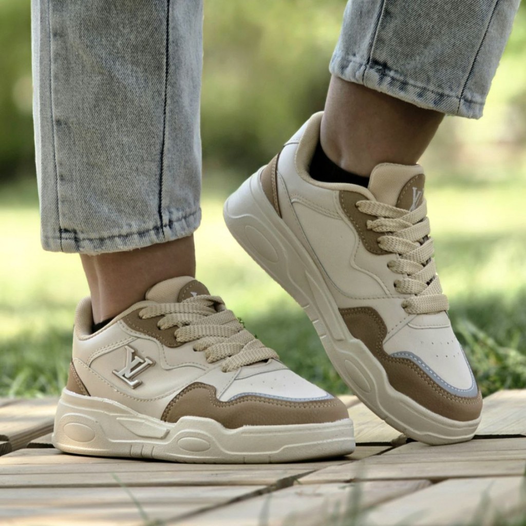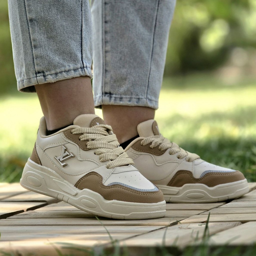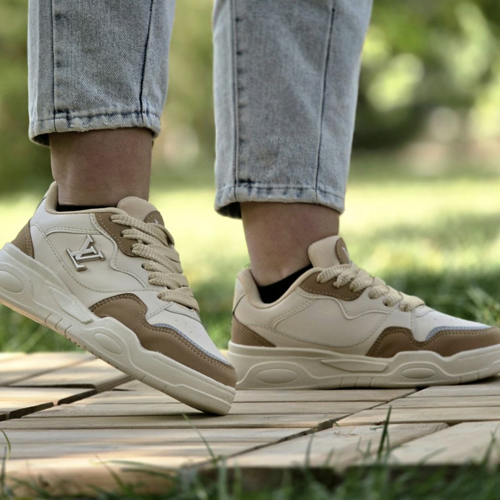 تخفیف ویژه کفش کتونی اسپرت ونس زنانه دخترانه مدل لویی ویلتون راحت و خاص رنگ کرم قهوه ای باارسال رایگان