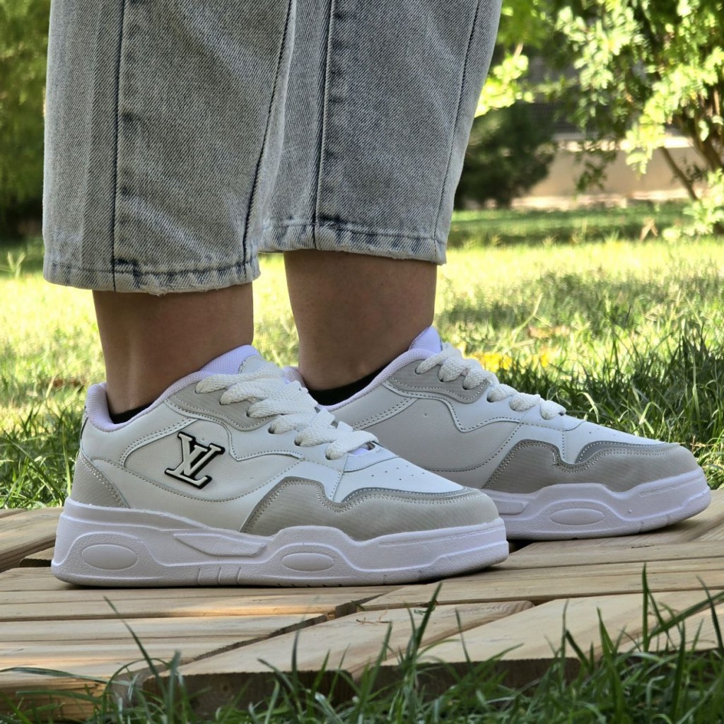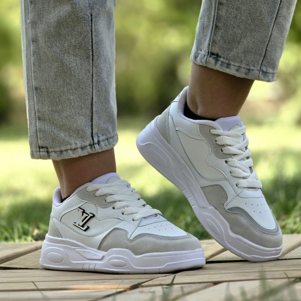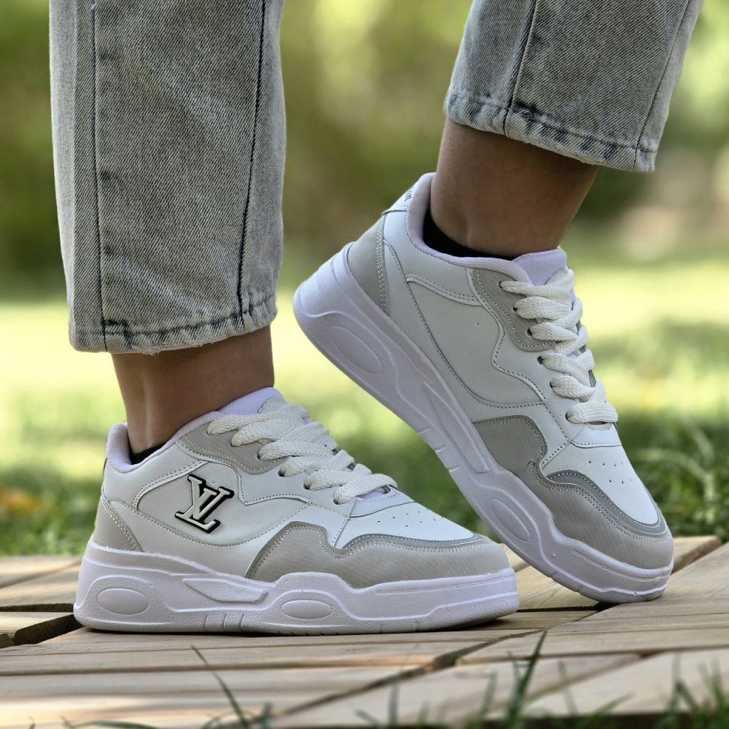 تخفیف خاص کفش کتونی اسپرت ونس زنانه دخترانه مدل لویی ویلتون باکیفیت و شیک رنگ سفید طوسی باارسال رایگان