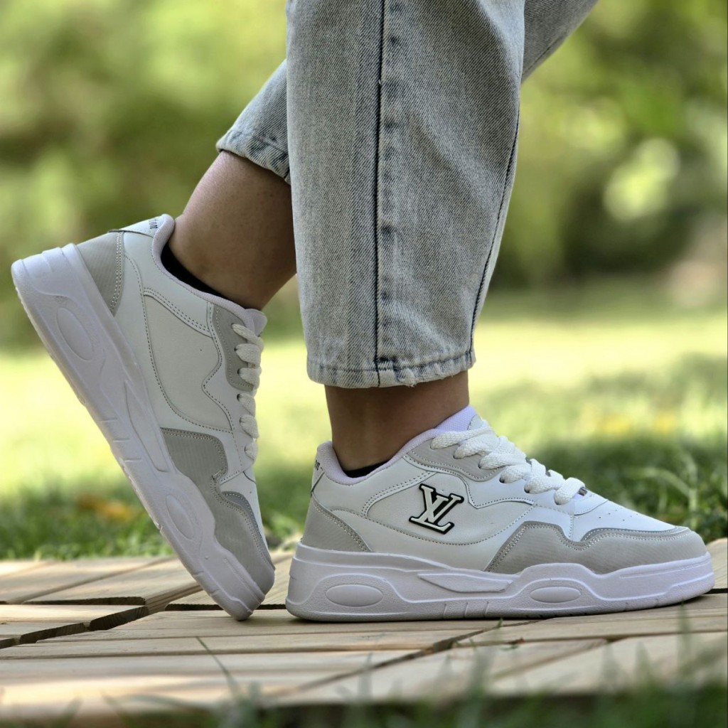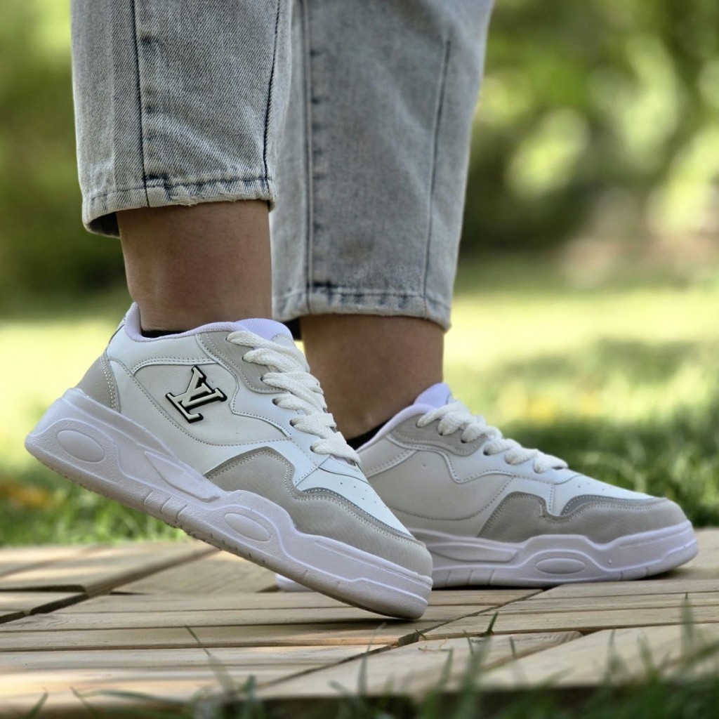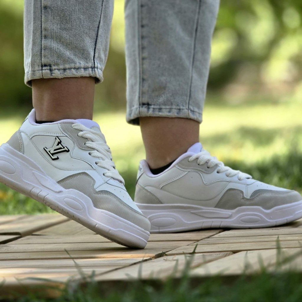 تخفیف خاص کفش کتونی اسپرت ونس زنانه دخترانه مدل لویی ویلتون باکیفیت و شیک رنگ سفید طوسی باارسال رایگان