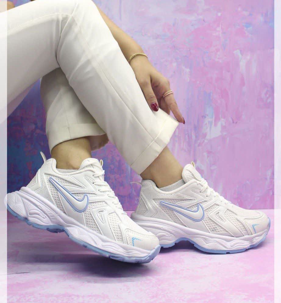 حراج ارزان کفش کتونی اسپرت زنانه دخترانه مدل نایک باکیفیتی خااااص رنگ سفید یاسی باارسال رایگان